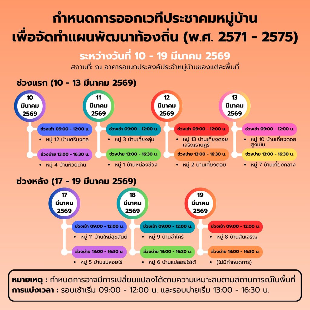 🍁🍁ระหว่างวันที่ 10-19 มีนาคม 2569 ณ อาคารเอนกประสงค์ของแต่ละหมู่บ้าน🍁🍁