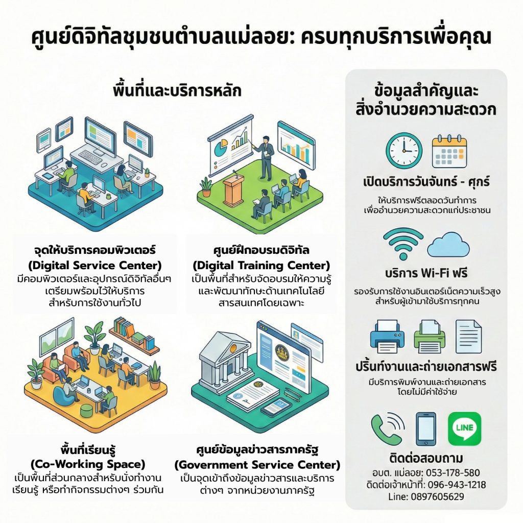 #ศูนย์ดิจิทัลชุมชน #ตำบลแม่ลอย #เรียนรู้ดิจิทัล #บริการชุมชน #อบตแม่ลอย