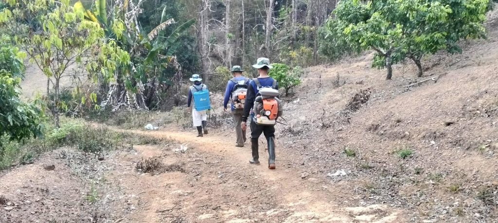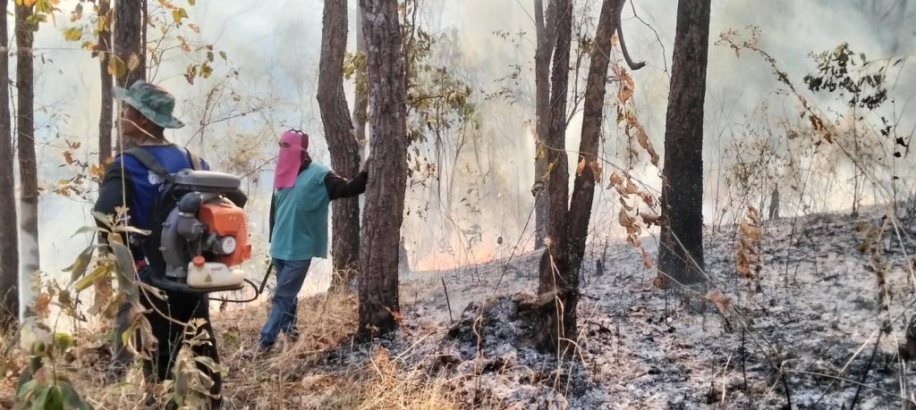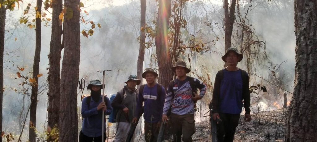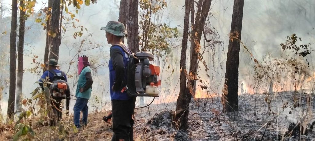 นายนันทภพ คำมูล รองนายกองค์การบริหารส่วนตำบลแม่ลอย พร้อมด้วย พร้อมด้วยทีมงานป้องกันและบรรเทาสาธารณภัยพร้อมด้วยผู้นำชุมชนในพื้นที่บ้านเกี๋ยงลุ่ม หมู่ที่ 3 ดำเนินการดับไฟไหม้ลุกลาม และฉีดน้ำกั้นแนวไฟไหม้ บริเวณป่าชุมชนในพื้นที่ห้วยป่างอ่าย เพื่อป้องกันการลุกลามไปยังบริเวณป่าชุมชนโดยรอบ ลดความสูญเสียในวงกว้าง