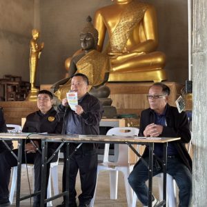 นายนพดล บั้งเงิน ผู้อำนวยการเลือกตั้งประจำองค์การบริหารส่วนตำบลแม่ลอย ร่วมออกหน่วยประชาสัมพันธ์การเลือกตั้ง นายก อบต. และ ส.อบต. ณ วัดแม่ลอยไร่