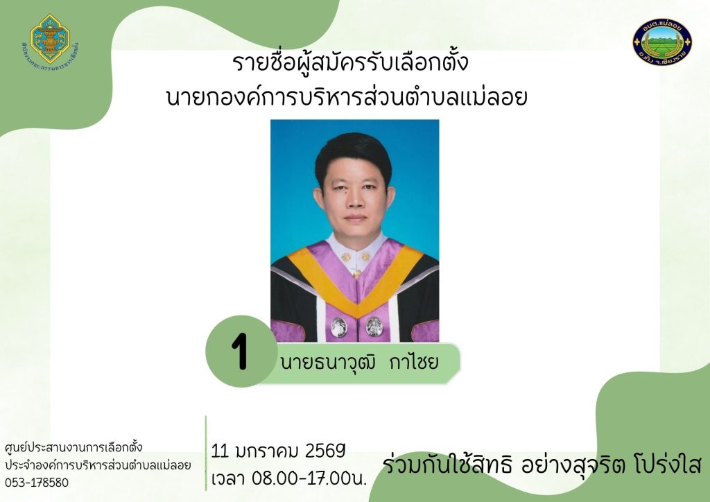 ผู้สมัคร นายก อบต.แม่ลอย รวม 1 ราย