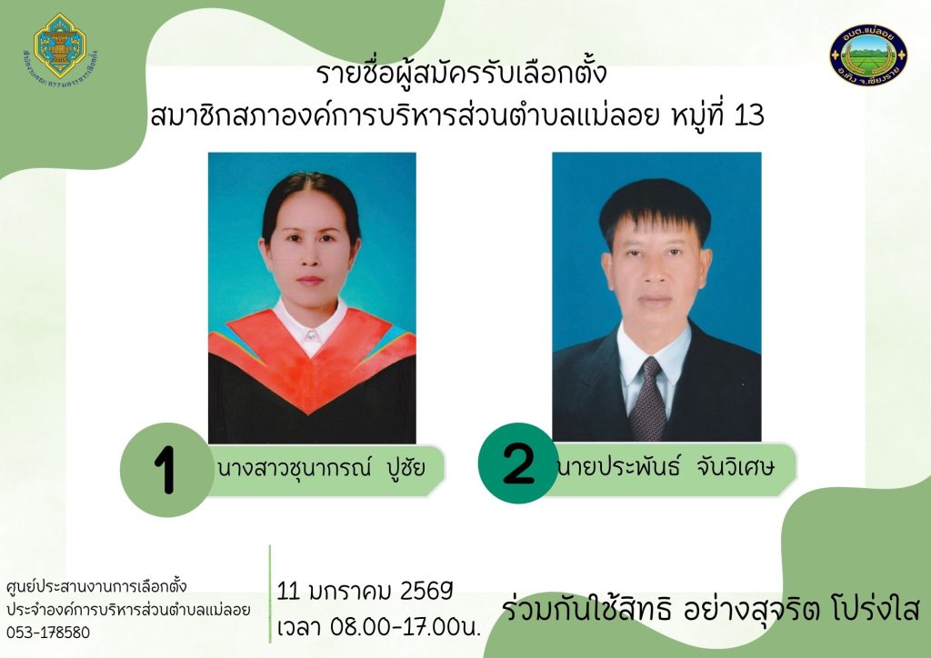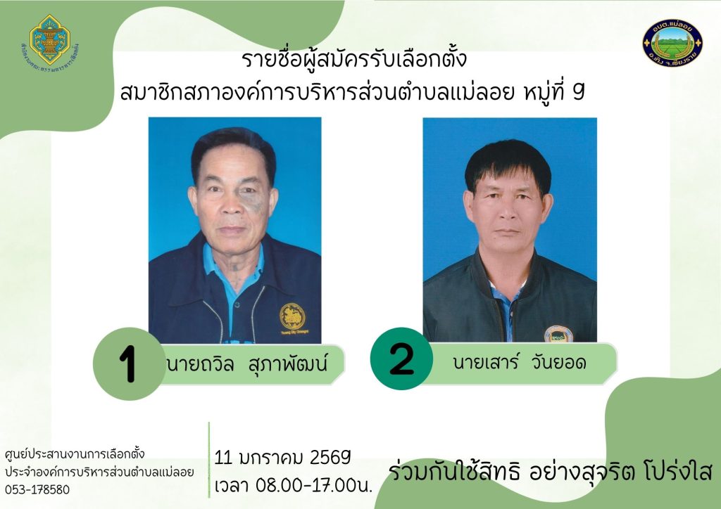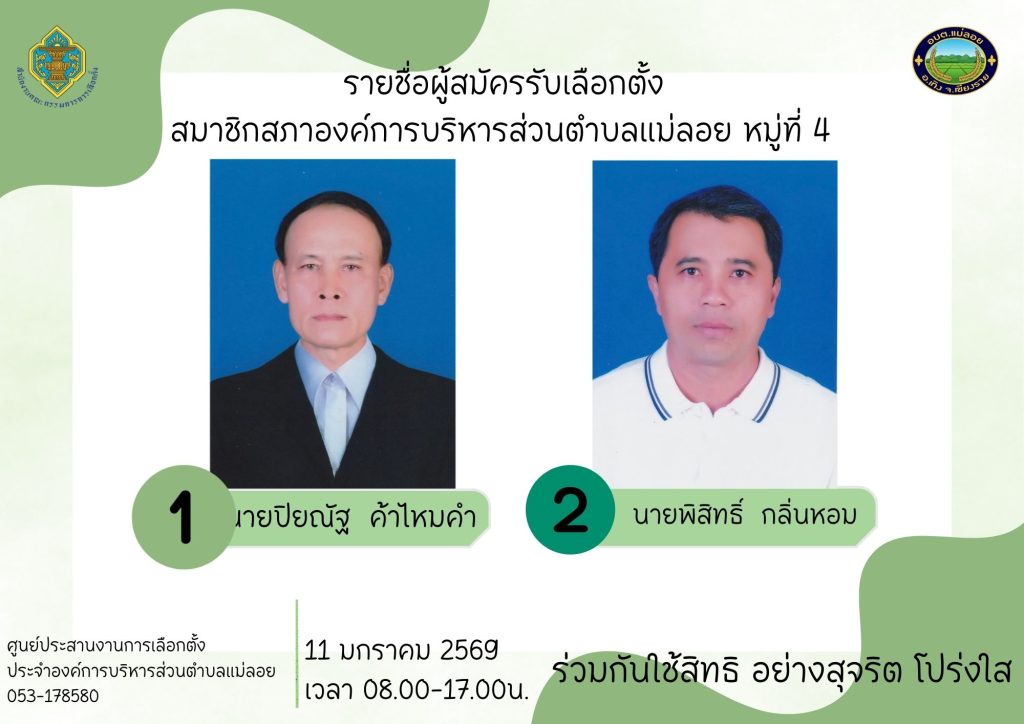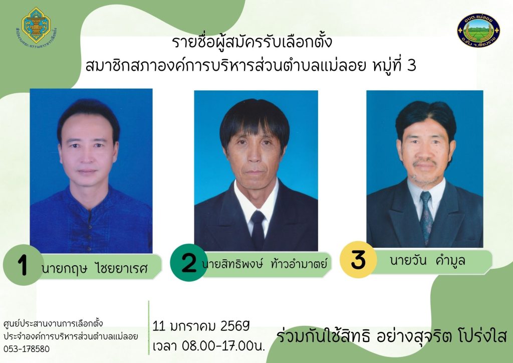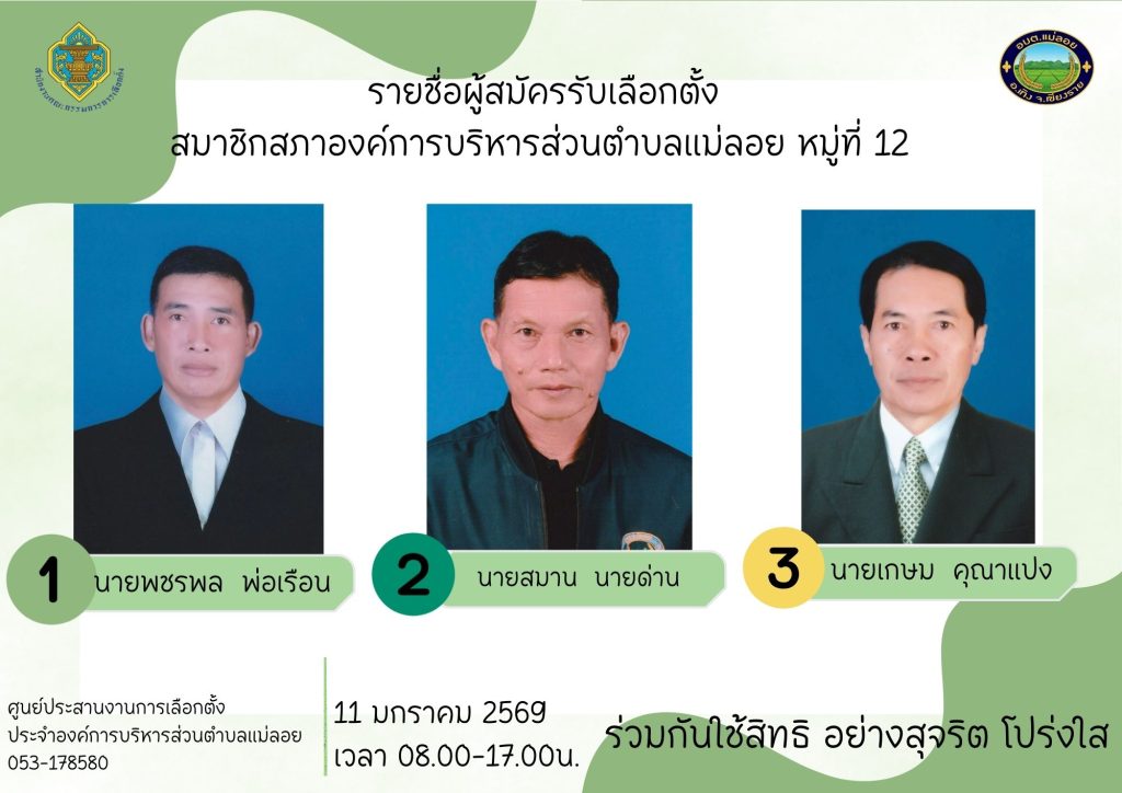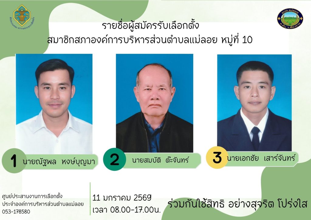 รายชื่อผู้สมัครรับเลือกตั้ง ส.อบต.แม่ลอย และนายก อบต.แม่ลอย