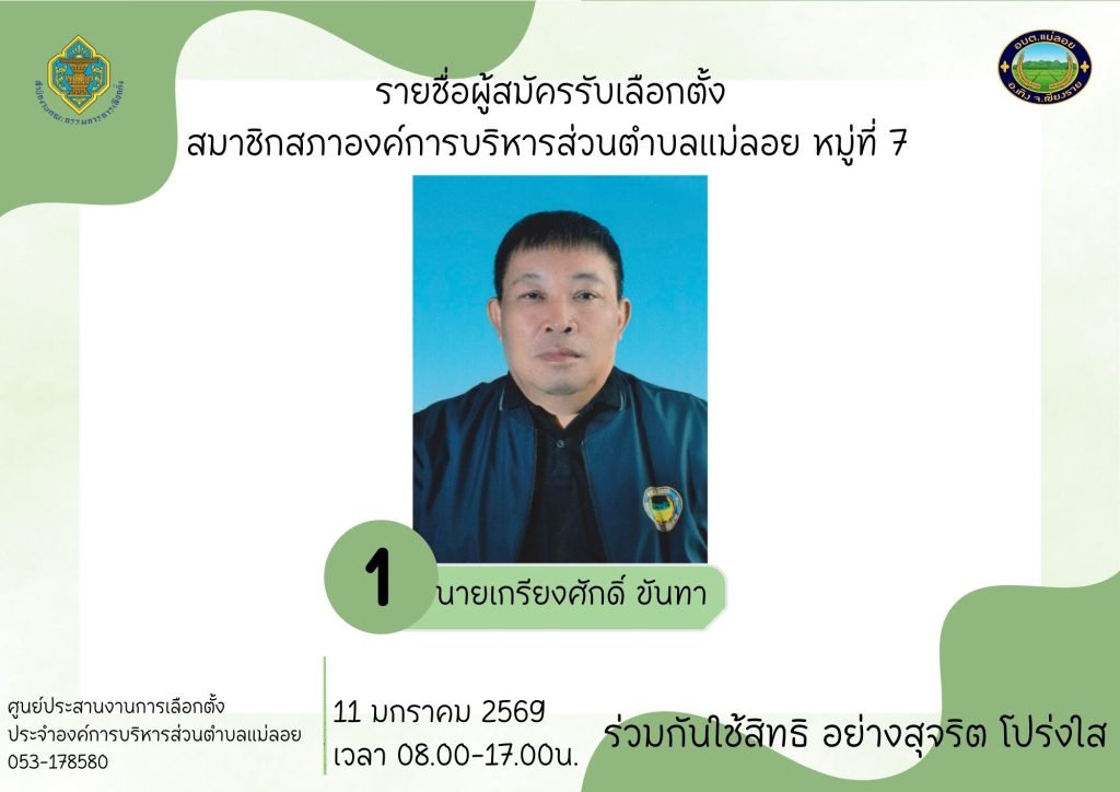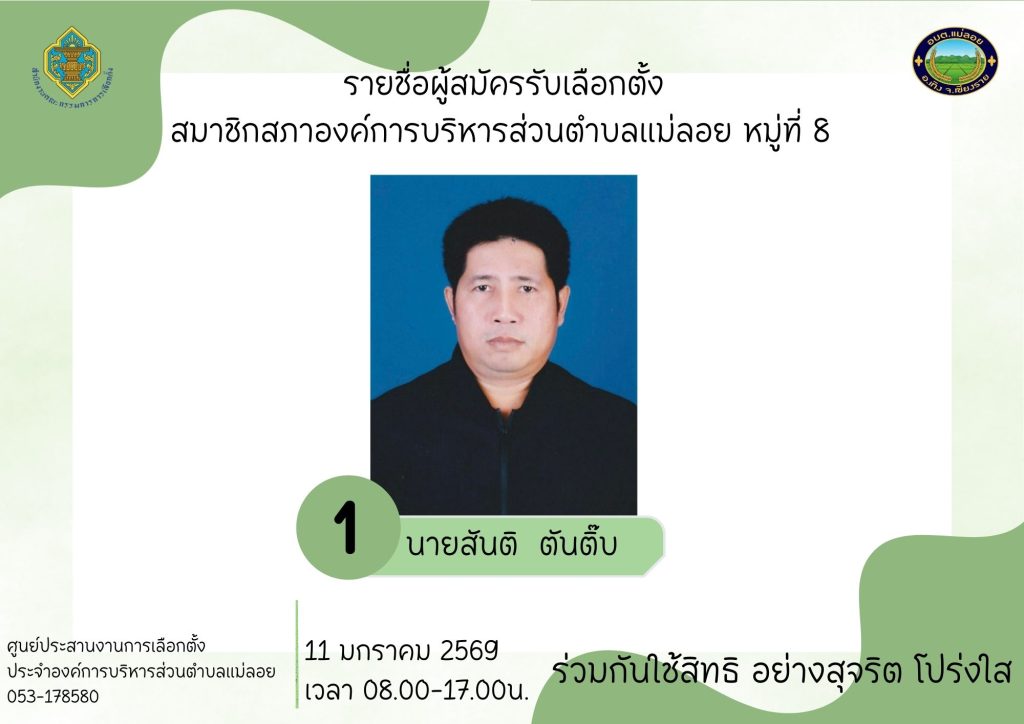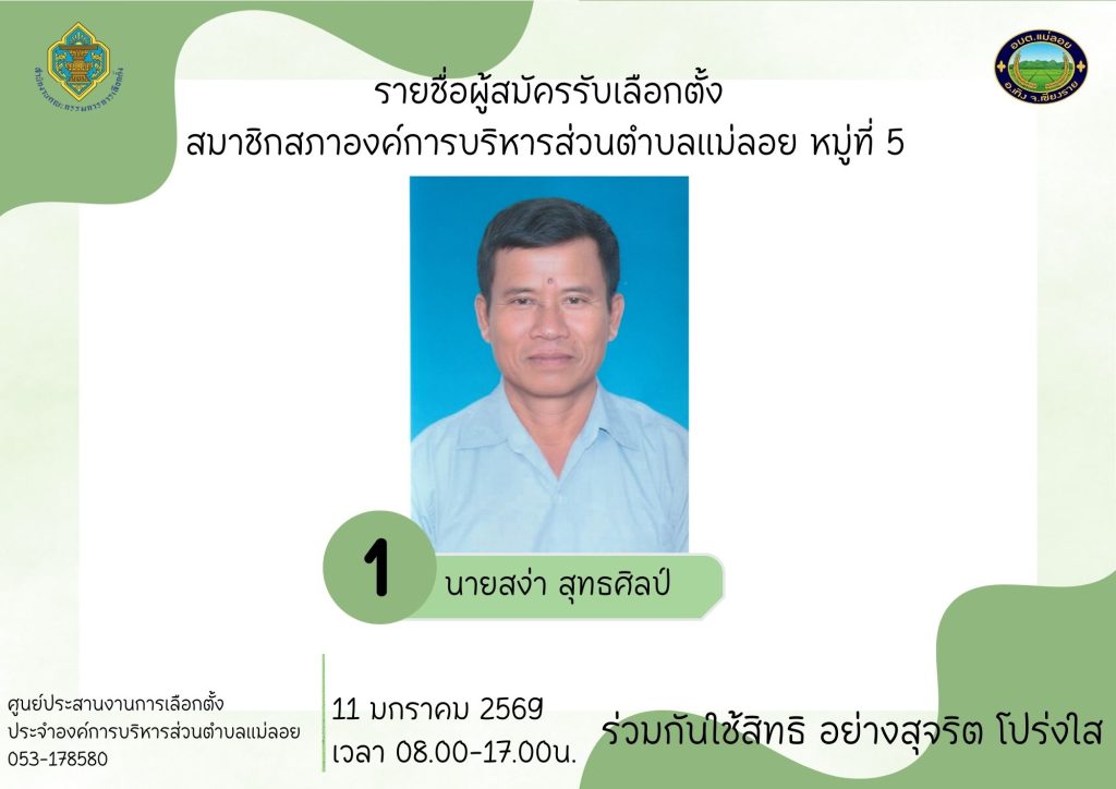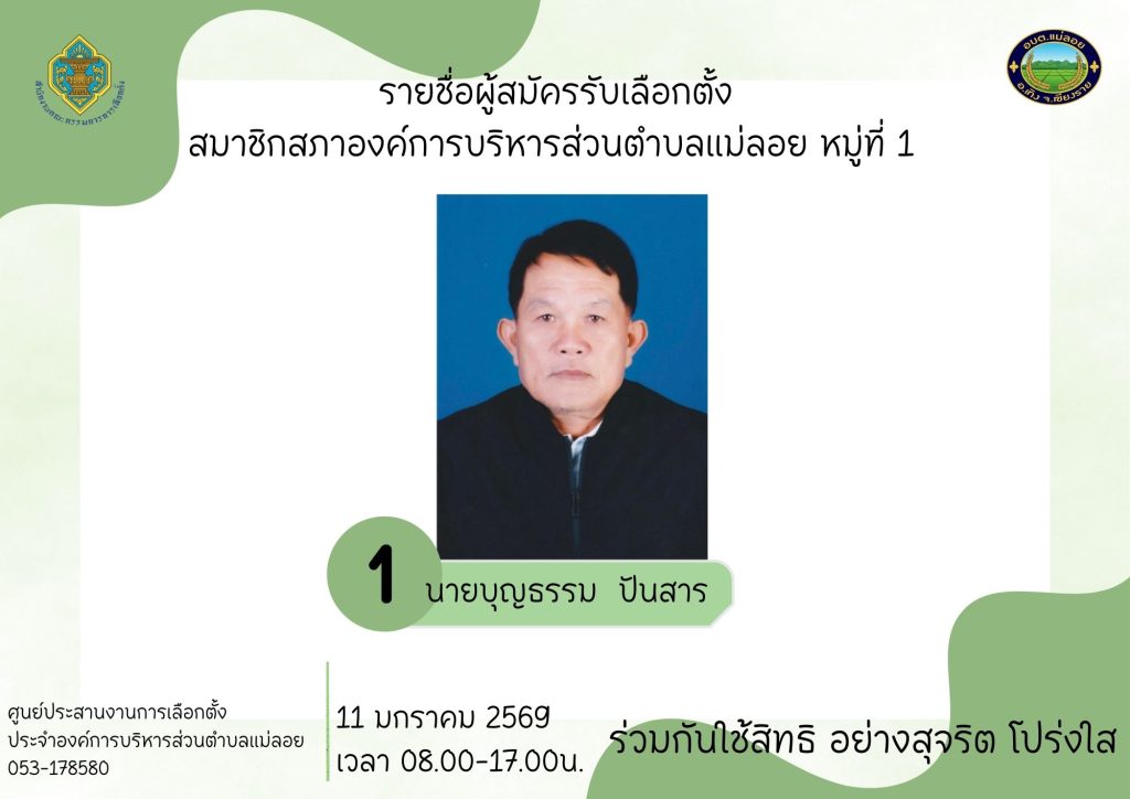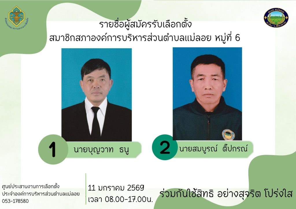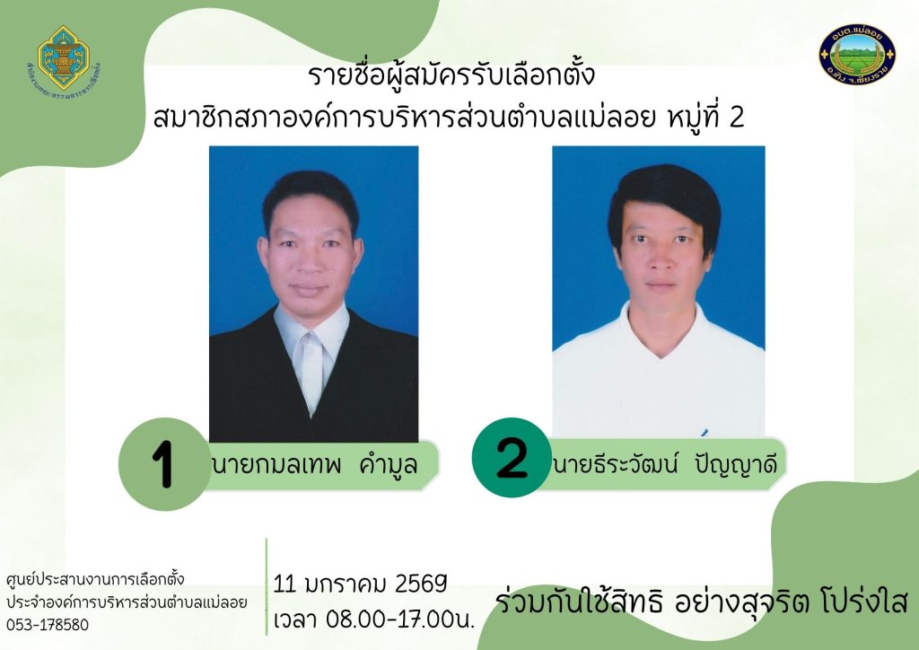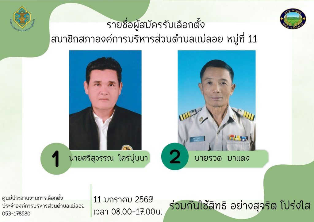 รายชื่อผู้สมัครรับเลือกตั้ง ส.อบต.แม่ลอย และนายก อบต.แม่ลอย