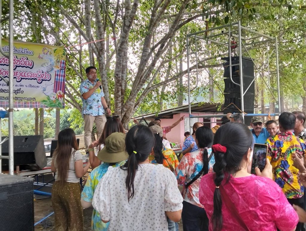 นายสมัย อินมาส รองนายกองค์การบริหารส่วนตำบลแม่ลอย พร้อมด้วยนายบุญวาส ธนู เลขานุการนายกองค์การบริหารส่วนตำบลแม่ลอย ร่วมต้อนรับนายอำเภอเทิง นายเอนก ปันทะยม ในงานสืบสานประเพณีสงกรานต์ รดน้ำดำหัวผู้สูงอายุและผู้นำชุมชน หมู่ที่ 8 ตำบลแม่ลอย อำเภอเทิง จังหวัดเชียงราย รายการนี้มีประชาชนในพื้นที่เข้าร่วมกิจกรรมเป็นจำนวนมาก