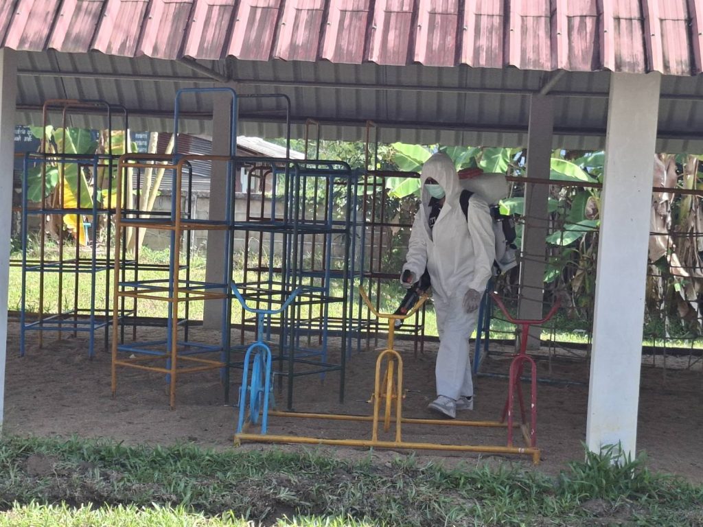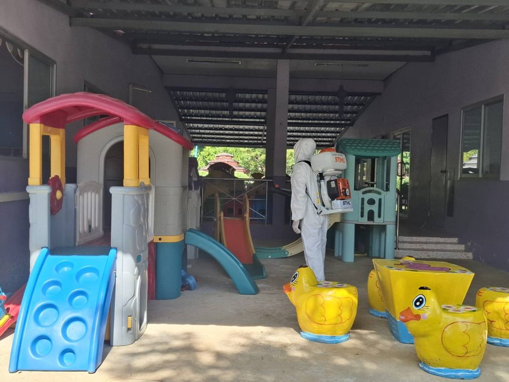 องค์การบริหารส่วนตำบลแม่ลอย โดยงานสาธารณสุขและสิ่งแวดล้อม สำนักปลัดองค์การบริหารส่วนตำบลแม่ลอย กรณีพบผู้ป่วยโรคติดต่อทางเดินหายใจ (RSV) จึงทำการทำความสะอาดของเล่นและอุปกรณ์ต่าง ๆ รวมถึงสถานที่ เพื่อให้เกิดความปลอดภัยแก่เด็กและครู โดยใช้โซเดียมไฮโปคลอเป็นส่วนผสมในการฆ่าเชื้อ ซึ่งสามารถฆ่าเชื้อได้ทั้งโรคหัด RSV และโรคมือเท้าปาก