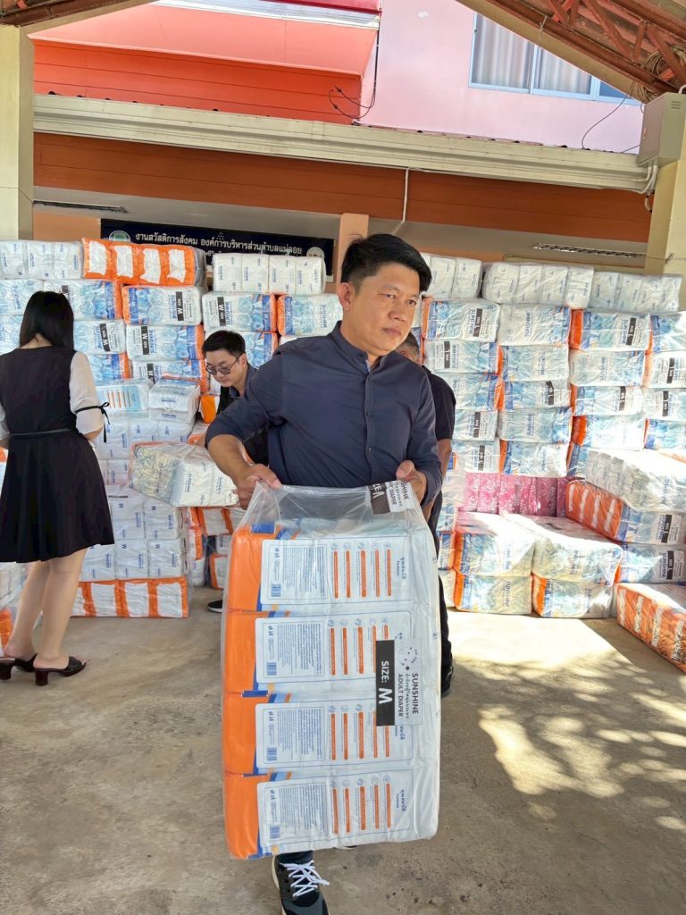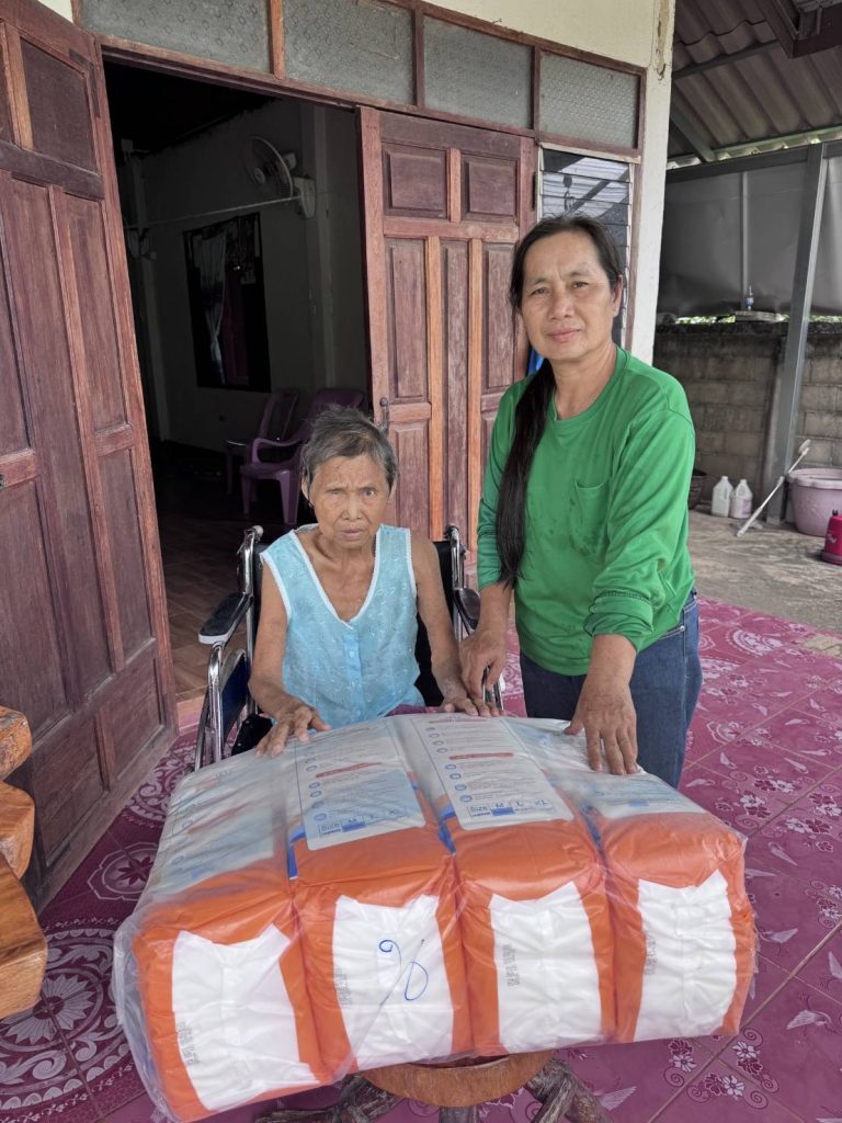 ส่งมอบผ้าอ้อมผู้ ใหญ่ตามโครงการจัดบริการดูแลระยะยาวด้านสาธารณสุขสำหรับผู้ที่มีภาวะพึ่งพิงให้กับผู้ป่วยที่มีการประเมิน ADL = 6 และน้อยกว่า 6 ตาม care Plan ไปใช้ในการดำรงชีวิตประจำวัน