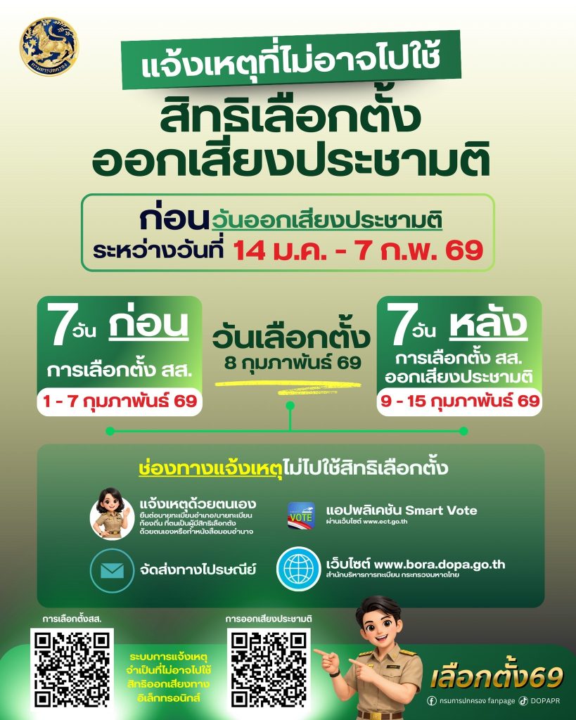 #กรมการปกครอง #เลือกตั้งล่วงหน้านอกเขต #แจ้งเหตุไม่ไปใช้สิทธิ #เลือกตั้ง2569 #เลือกตั้ง69 #Election69