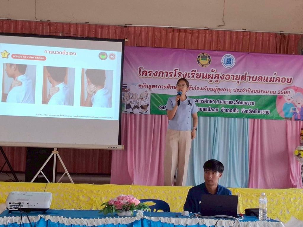 โครงการโรงเรียนผู้สูงอายุตำบลแม่ลอย ครั้งที่ 2 หลักสูตร การศึกษาสำหรับโรงเรียนผู้สูงอายุ หมวดวิชาชีวิตและสุขภาพ หัวข้อวิชา สุขภาพกาย(3อ)